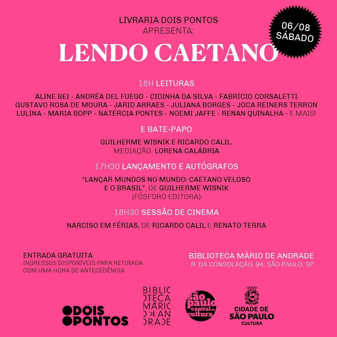 Lendo Caetano foi um evento que aconteceu em agosto de 2022 na Biblioteca Mário de Andrade, apresentado por Livraria Dois Pontos, em razão da comemoração dos 80 anos de Caetano Veloso. No programação gratuita houve leituras, bate-papos, lançamentos de livros e sessões de autógrafos seguidos pela exibição do documentário Narciso em férias, de Ricardo Calil e Renato Terra.